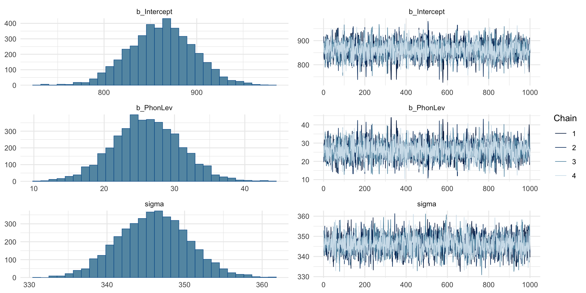 \(\hat{R}\): should be 1 (> 1 means non-convergence).