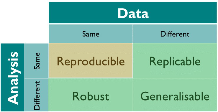 Transparency and reliability of results (reproducible, replicable, robust, generalisable).