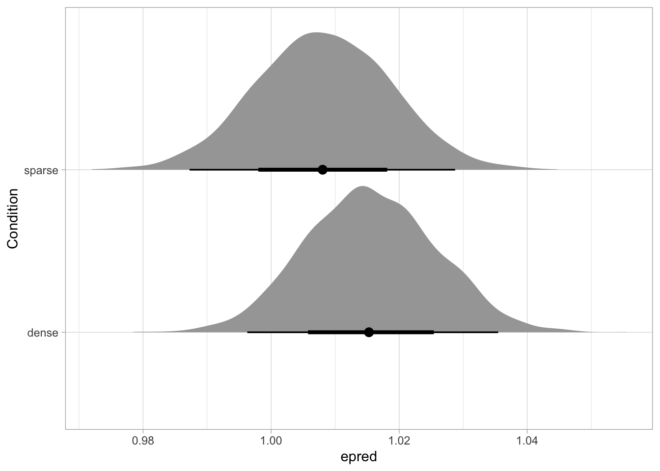 pivot_longer(dense:sparse, names_to = "Condition", values_to = "epred")Warning: Dropping 'draws_df' class as required metadata was removed.
