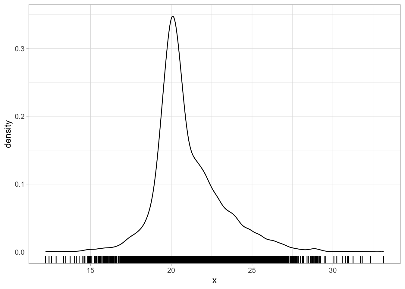 x1 <- rnorm(n, mean = 21, sd = 1.5)